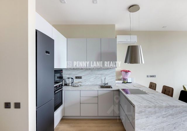 Покупателю остаются: мебель и сантехника в с/узлах, встроенная мебель в комнатах, кондиционеры, итальянский кухонный гарнитур Verona, немецкие встроенный холодильник, посудомоечная машина, варочная поверхность, духовка-пароварка, вытяжка (Neff) стиральная и сушильная машины (Miele), СВЧ-печь.