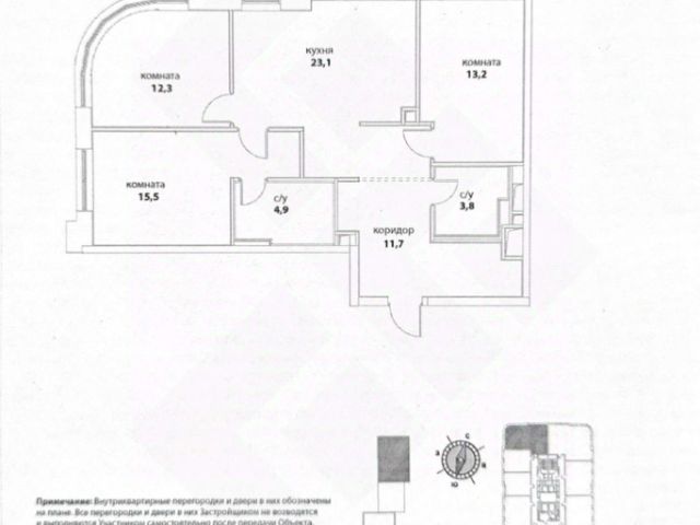 Продаётся трёхкомнатная квартира в Москве.