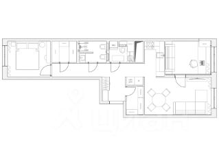 Функциональная планировка: кухня-гостиная и отдельная спальня.