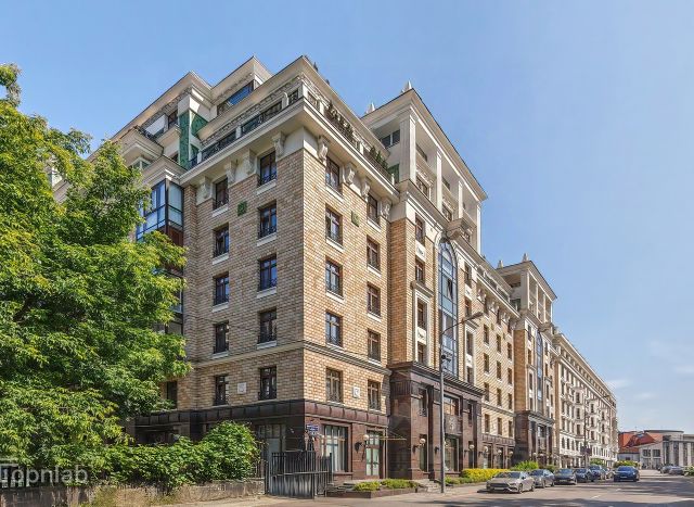 Дом премиум-класса, 300 квартир. Сочетание стиля роскошных особняков 19 века и сталинского ампира. Фасады из природного камня с колоннадами, лепниной, панно из итальянской мозаики с гербом Grand Deluxe. Лифты Schindler.