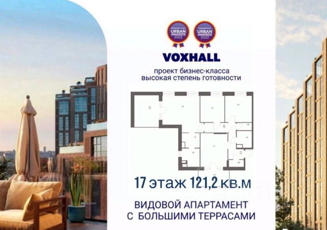 Арт. 129227481 СРОЧНАЯ ПРОДАЖА ПО СУПЕРЦЕНЕ ДО КОНЦА МЕСЯЦА!!! УНИКАЛЬНЫЙ ВИДОВОЙ АПАРТАМЕНТ С ДВУМЯ ВОСХИТИТЕЛЬНЫМИ ТЕРРАСАМИ И САМЫМИ ЛУЧШИМИ ВИДОВЫМИ ХАРАКТЕРИСТИКАМИ в жилом комплексе бизнес-класса VOXHALL (Корпус 4) на 17 этаже 25-этажного дома. Срок сдачи — 1 квартал 2026 года. Переуступка от физического лица.