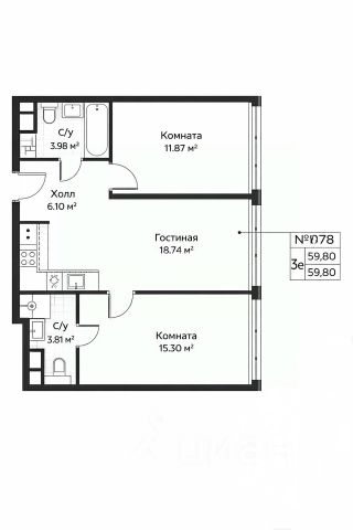 Подробное описание отделки квартиры представлено на изображениях, мебель и кухонный гарнитур в комплект не включены.