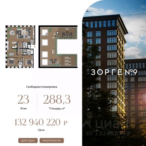 "Зорге 9" — готовые апартаменты бизнес-класса от компании St MICHAEL. 3 современных корпуса с фасадами в стиле архитектуры Нью-Йорка и с сервисами премиальных отелей, высотой до 21 этажа. На верхнем уровне комплекса расположены роскошные просторные пентхаусы с высотой потолка до 4,3 метра и панорамными окнами до 3,6 метров, открывающими великолепные виды на столицу. Пентхаусы с выходами на собственные приватные террасы на кровле, площадью от 150 кв. м являются жильем high-уровня, демонстрирующим высокий статус владельца. В них предусмотрена уникальная опция на потолках есть "световые фонари", дающие максимальный уровень света и воздуха. Свободная планировка, небольшая глубина этажа, огромные панорамные окна в пол и высота потолков до 4,3 м позволят реализовать самые смелые концептуальные идеи и создать идеальный интерьер с учетом всех пожеланий. Вдохновляющие виды на город украсят ваш апартамент лучше любой картины. Есть возможность приобретения дизайн-проекта и полной меблировки апартаментов от партнеров девелопера. Взыскательному вкусу резидентов комплекса соответствуют элегантные лобби с дизайнерской отделкой премиальными материалами, lounge-зона для отдыха и встреч с гостями, кафе с камином и легким эмбиентом, стильная отделка холлов. Престижная локация на Ходынке обеспечит жителей комплекса богатой инфраструктурой исторического района и быстрым доступом к центру города. До делового центра "Москва-Сити" от "Зорге 9" всего 10 минут на автомобиле. "Зорге 9" СДАН, все корпуса введены в эксплуатацию.