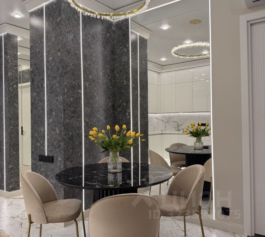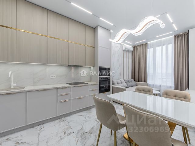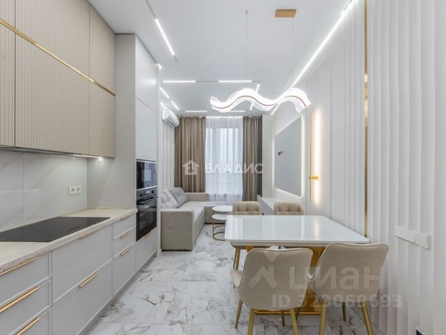 Кухня-гостиная 30м2 с 54 сценариями освещения, полностью укомплектована всей техникой(посудомоечная машина, микроволновая печь, духовой шкаф, встроенный холодильник, вытяжка, варочная панель).
