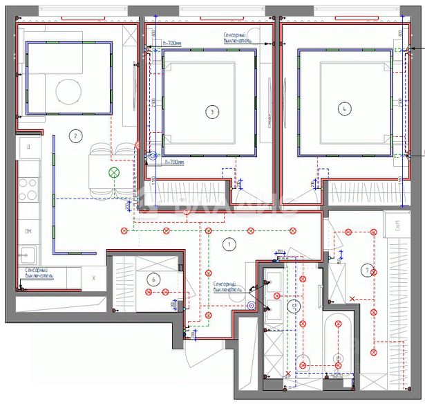 Вторая комната 14м2 свободного назначения с 11 сценариями освещения, имеет собственную гардеробную комнату.