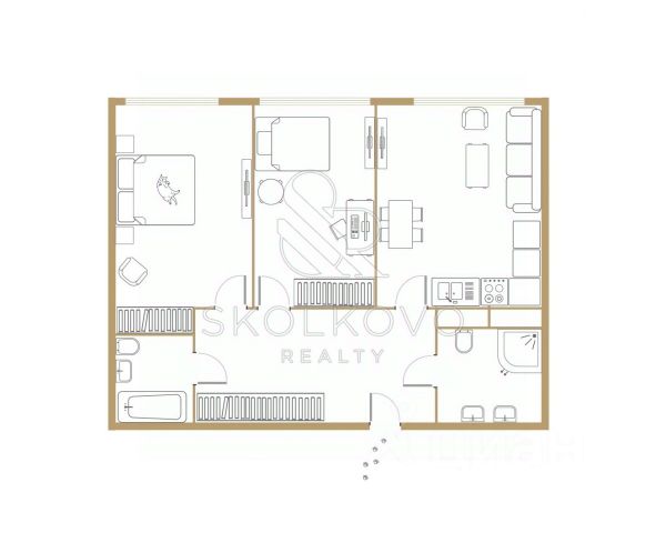 В квартире два санузла, первый санузел с ванной, второй приватный мастерсанузел с душевой и ванной.