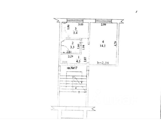 Данные получены с сайта ГИС Торги. Квартира, общ.пл. 27,3 кв.м., к/н: 50:14:0000000:27455, адрес: МО, Щелковской р-н, рп. Монино, ул. Маслова, д. 4, кв. 17.