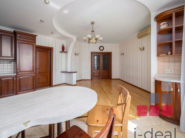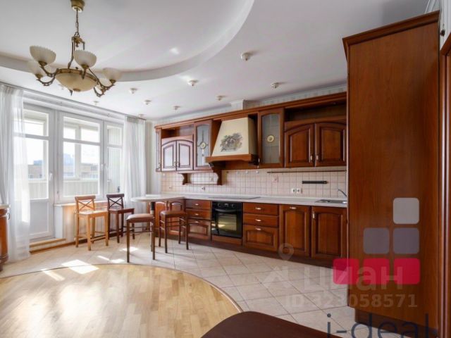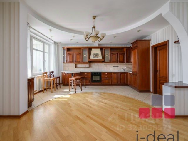 - В кухне установлен кухонный гарнитур, выполненный под заказ, техника фирмы MAUNFELD (встроенный холодильник, посудомоечная машина, духовой шкаф, варочная поверхность, вытяжка). Стол, пять мягких стульев, телевизор, шторы,