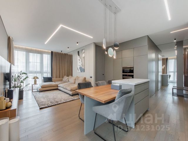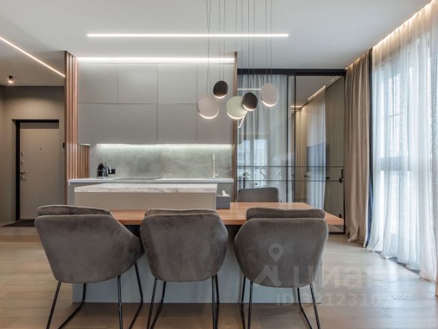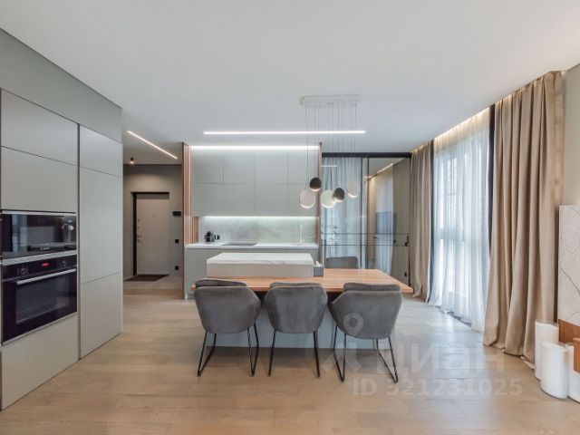 В квартире выполнен качественный, современный дизайнерский ремонт, использовались дорогие материалы, импортная сантехника, мебель на заказ. В квартире многоуровневое освещение, различные виды подсветки. Установлен кондиционер.