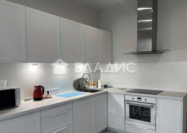 Новая стильная кухня: духовка, вытяжка, варочный панель, встроенный холодильник, посудомойка. Стиральная машинка/сушильная машинка.