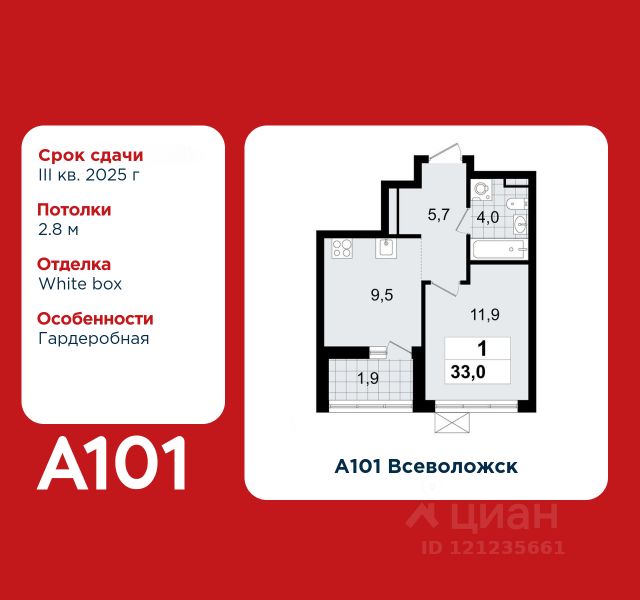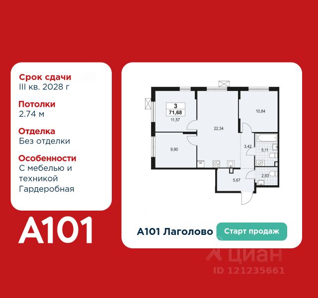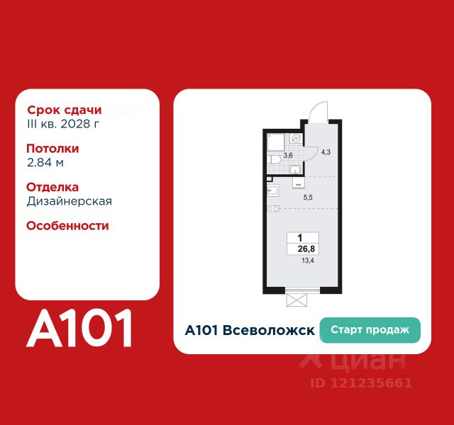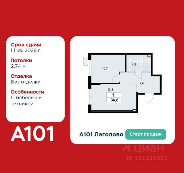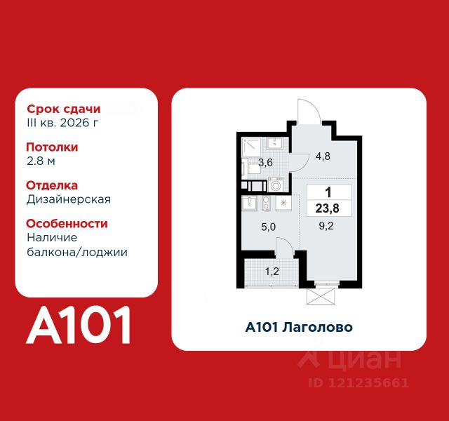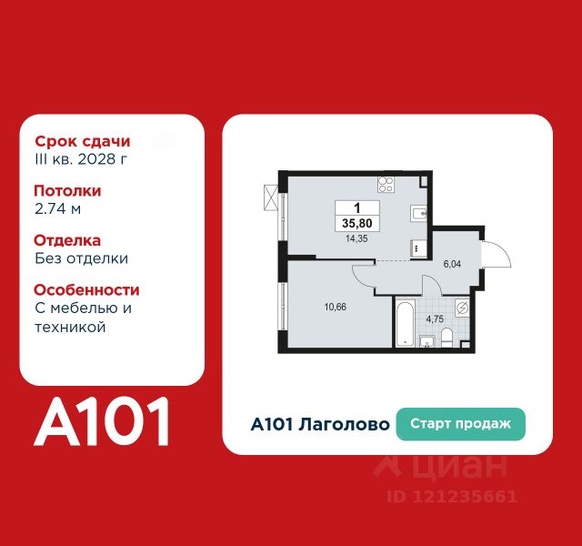 ПЕРЕУСТУПКА ПРАВА! Продаётся квартира в новостройке — ЖК "А101 Лаголово" , корп. 1.1 Общая площадь квартиры — 34,6 кв. м., этаж 3 из 9, секция 1 Без отделки Тип проекта, по которому построен дом — монолит Компания-застройщик — ГК "А101". Срок сдачи — 4-й квартал 2025 ОТДЕЛКА Квартира передается без отделки. Благодаря тому, что в данном типе отделки стены не возводятся, вы сможете создать удобную планировку и самостоятельно организовать зонирование комнат. ОСОБЕННОСТИ ПЛАНИРОВКИ Мезонин - полуэтаж с большим количеством естественного света. На втором уровне можно организовать спальню или кабинет. Патио - это собственный дворик или терраса с выходом из квартиры во двор, огорожен живой изгородью, пол надежно защищен бетонной плитой. ПАРАДНАЯ В каждой парадной предусмотрены места для хранения велосипедов и колясок, гостевой санузел, лапамойка (место для мытья домашних животных или колес велосипедов) и удобная зона ожидания для гостей. ДВОРЫ И ОКРУЖЕНИЕ Просторные дворы свободны от машин и закрыты от посторонних. Большую часть комплекса займут благоустроенные зелёные зоны, теневые сады и городские общественные пространства с развитой тротуарной сетью и велодорожками. Каждый дом оборудован системами видеонаблюдения и контроля доступа. "А101 Лаголово" - современный город у подножия знаменитых Дудерговских высот, в объятиях чистейших озёр и зелёных живописных массивов, наполненный всем необходимым для счастливой жизни. ИНФРАСТРУКТУРА. Мы занимаемся комплексным освоением территории. Наш приоритет - доступность всех сервисов для счастливой жизни. 1. Лаголово-город 15-ти минутной доступности. Вся необходимая инфраструктура: магазины, салоны красоты, образовательные учреждения, медицинские центры находятся в 15-ти минутах пешей прогулки от любой точки жилого комплекса. Это позволяет не тратить время на долгие перемещения. 2. Представьте идеальный город, где ребенок может спокойно играть, а пожилой человек наслаждаться заслуженным отдыхом. Жилая среда нашего комплекса может комфортно использоваться как 8-летним ребенком, так и 80-летним пожилым человеком. Дома, улицы, общественные пространства, тротуары спроектированы с заботой о людях разных возрастов. 3. Мы активно развиваем авторскую образовательную экосистему "Лёрнити". Она включает строительство 8 современных детских садов (2000 мест) и 3 школ (2945 учащихся). Мы учим родителей гармонично общаться с детьми, помогаем малышам подготовиться к школе, а подросткам - выбрать будущую профессию и развить таланты.