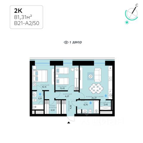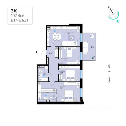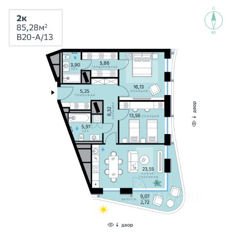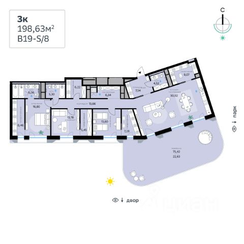 В продаже — двухкомнатная квартира, общей площадью 72,8 кв. м. Квартира расположена на втором этаже десятиэтажного дома класса Оптимум в квартале В17 нового района СберСити, который строит Сбер. Всего в доме — 55 квартир. Квартал В17 — современная интерпретация голландской архитектуры. Каждый корпус имеет индивидуальный облик. В домах класса Оптимум используется лаконичная крупноформатная облицовка стеклофибробетоном и декоративными металлическими панелями. На верхних этажах расположены квартиры с панорамным остеклением и террасами, с которых открываются виды на город, парки и бульвар. Квартира сдаётся без отделки. Установлены двухкамерные стеклопакеты с алюминиевым профилем и скрытыми створками. Высота потолков — от 2,7 м. В квартирах предустановлена система "умный дом" — комплекс решений, объединяющий квартиру, дом и прилегающую территорию. Жильцы смогут регулировать климат и освещение голосом или со смартфона, установлена защита от протечек. В доме расположены: • уютное лобби, • коворкинг, • общественная терраса, • детская игровая комната, • лапомойка, • колясочная и велосипедная комната на первом этаже, • подземный паркинг. Квартал В17 состоит из шести корпусов переменной этажности (от 1 до 10 этажей) и 491 квартиры. Корпуса объединены общей подземной частью, где расположен паркинг на 309 автомобилей, места для мотоциклов и более 400 кладовых помещений. Во дворах созданы приватные благоустроенные пространства с ландшафтными композициями, детскими и спортивными площадками, зоной для йоги, прогулочными маршрутами и местами отдыха. Рядом расположен детский сад, парк и набережная Москвы-реки. СберСити — это новый жилой и деловой район на западе Москвы, в одном из самых экологически чистых и престижных мест столицы. Это первая в России и крупнейшая в мире инновационная городская среда, созданная по международным стандартам зелёного проектирования. Здесь внедряются решения в области энергоснабжения, вакуумного мусороудаления, тестирования зелёных технологий, а в дальнейшем — системы искусственного интеллекта для управления домами и городской инфраструктурой. Строительство проекта началось в 2021 году, заселение первых корпусов — с лета 2024-го. Общая площадь территории — 461 га, из них более 2,5 млн кв. м жилья и около 833 тыс. кв. м офисных пространств. Будет построено 7 школ, 13 детских садов и 2 поликлиники. В СберСити будут жить 65 тыс. человек и работать 70 тыс. Развитием территории занимается АО "Рублёво-Архангельское", входящее в группу Сбер. СберСити — место, где хочется жить, работать и растить детей. Переезжайте в СберСити!