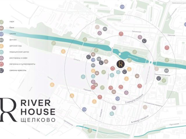 Поблизости есть все необходимое для комфортной жизни резидентов комплекса — гимназия, школы, детские сады, больница, поликлиники, супермаркеты, торговый комплекс, кафе, рестораны, салоны красоты и сервисы бытовых услуг и многое другое.