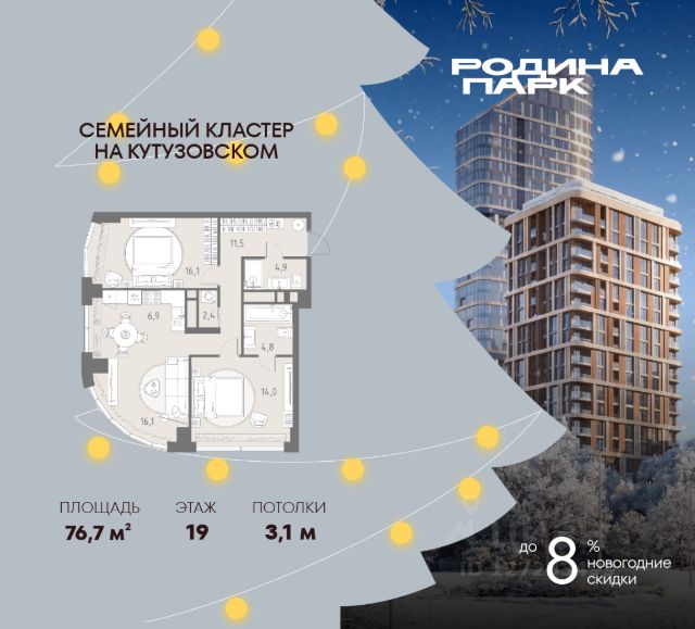 В жилом кластере Родина Парк рядом с природным заказником Долина реки Сетунь продаётся 4-комнатная квартира. Продуманная европланировка, которую легко зонировать под ваши запросы. Потолки от 3,1 м. "Родина Парк" — премиальный семейный кластер с образовательным медиакластером, строящийся на западе Москвы в окружении природного заповедника "Долина реки Сетуни". • Скидки недели на избранный пул лотов • Рассрочка 0% на выгодных условиях до 2 лет • Семейная ипотека, подбор комбо-вариантов ипотечных программ прямо в офисе продаж • Скидки 8% при 100% оплате или ипотеке. ЛОКАЦИЯ: 8 минут пешком до станции БКЛ "Давыдково". 12 минут на автомобиле до Нового Арбата. Удобные выезды на Кутузовский проспект, Аминьевское шоссе. ИНФРАСТРУКТУРА И СЕРВИСЫ ДЛЯ ЖИТЕЛЕЙ - Уникальная экосистема для развития, здоровья и творчества на территории 3,5 Га: - Первый в России образовательный медиакластер (с участием Русской медиагруппы) для творческого развития детей и взрослых с возможностью получить востребованную профессию в сфере шоу-бизнеса. - Инфраструктура и сервисы для семей с детьми на территории жилого кластера (частный детский сад, детские игровые пространства, творческие студии для занятий музыкой и танцами, безопасная и комфортная среда для детей и родителей), событийно-культурная площадка для проведения семейного досуга); - Здоровая среда (биохакинг-центр, фитнес-зал и спортивная инфраструктура во дворе, медитационные пространства, инженерные решения для освещения, свежего воздуха и очистки воды, сервисы красоты и поддержания активного долголетия); - Сервисы заботы (инфраструктура комфорта - подземный паркинг, кладовые, колясочные, консьерж- сервис, умный дом, мобильное приложение, профессиональная управляющая компания, сервисы охраны и обеспечение абсолютной безопасности) - Комьюнити резидентов (социальные пространства для дружеского и делового общения - летний атриум с уличным кинотеатром, зоны отдыха, кафе и рестораны, комьюнити-сервис с культурно- событийной программой в медиакластере); - Модуль благосостояния (комфортные пространства для работы и саморазвития - коворкинги и переговорные). ИНФРАСТРУКТУРА РАЙОНА: Насыщенная образовательная среда: филиалы МГИМО, МГУ, МГТУ, Сколково. Топовые школы: 6 лучших частных школ Москвы и области (Forbes) в 10 минутах езды. Природное окружение для пеших прогулок, спорта и отдыха. "Родина Парк" — это место, где растут и дети, и ваши возможности. Экосистема, где всё подчинено развитию — физически, профессионально, творчески.