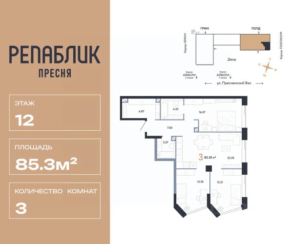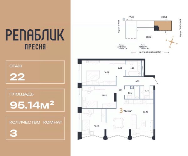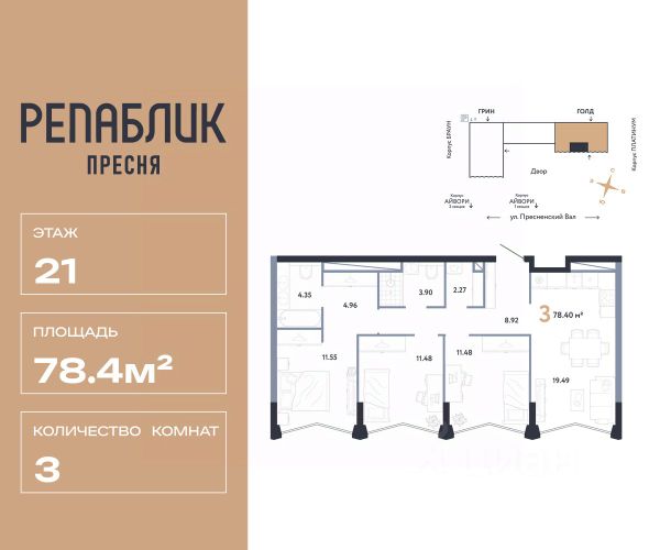 Рассрочка 0% с первым взносом от 20%, ипотека с субсидией или наличные. Подберём способ оплаты индивидуально. Продается 4комнатная квартира на 7 этаже от застройщика Страна Девелопмент. Площадь квартиры 91.35 кв. м. Дизайн-квартал "Republic" — новый проект премиум-класса в Москве от федерального застройщика "Страна Девелопмент". ЦАО, Пресня, 7 мин. от метро "Белорусская". 10 жилых башен и 4 восстановленных здания локомотивного депо образуют уникальное пространство. "Republic" — место, где вы ощутите гармонию истории и современности. За 12 мин. вы сможете дойти до Московского зоопарка, за 10 мин. на авто доехать до Патриарших прудов и Белого дома. Преимущества • Благоустройство. SPA-комплекс с бассейном и термами, гастрономический, учебный и шопинг-центры, приватный бульвар и яркие арт-пространства — для жителей предусмотрены все элементы премиального комфорта. • Панорама на центр. Наслаждайтесь видами ЦАО каждый день: панорама на историческую Пресню и башни Москва-Сити — из своей квартиры или с приватной террасы на крыше. • Концептуальное лобби в каждой башне. С общей террасой на кровле, с библиотекой, коворкингом и фитнес-рум. Стойка консьержа перетекающая в бар и др. • Современные форматы квартир. Свободные планировки, с террасой или балконом, с возможностью установки камина, от 1-комнатных до пентхаусов. Отделка Квартиры сдаются без отделки или в формате White box. При White box уже выполнены все шумные и грязные работы: произведена разводка электричества с подрозетниками, установлены откосы из гипсокартона, устроена стяжка пола с шумоизоляцией и др. Способы покупки Сотрудники "Страна Девелопмент" будут сопровождать вас на каждом этапе сделки, помогут получить одобрение по ипотеке или снизить ежемесячный платеж. - ипотека (стандартная/с субсидией/траншевая) - рассрочка (с ПВ от 20%) - с использованием материнского капитала - оплата наличными
