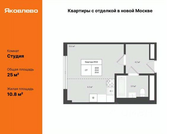 Продается студия площадью 25.1 кв.м. на 1-м этаже ЖК "Яковлево" 8 корпусов 1-ой и 2-ой очереди строительства введены в эксплуатацию. Жилой комплекс "Яковлево" — это проект для тех, кому близка энергия природы в сочетании с инновационными технологиями XXI века. При возведении ЖК применена технология крупногабаритного модульного домостроения. Квартиры здесь — это выбор нового поколения, для которого дом является местом, где можно черпать силы для новых свершений. Элегантный минимализм в архитектуре разработан так, чтобы не нарушить, а дополнить гармонию окружающего ландшафта. Пластика фасада базируется на простой геометрии, а отличительной особенностью комплекса является невысокая этажность (4 этажа) большей части домов. Только два корпуса — 11 и 16 этажей. Инфраструктура ЖК: 15 жилых корпусов Школа и детский сад Молочно-раздаточный пункт Дворы с детскими площадками и зонами отдыха Магазины формата "у дома" на 1-х этажах зданий Автостоянка на территории 30 минут на транспорте до ближайших станций метро "Тёплый Стан", "Коммунарка" В перспективе — открытие станции метро в г. Троицк в непосредственной близости от ЖК "Яковлево". Условия приобретения: Льготная ипотека и возможность использования материнского капитала. Рассрочка на покупку квартиры: Первоначальный взнос — от 30% от стоимости квартиры. Срок рассрочки — 1 год. Платежи вносятся равными частями (ежемесячно или ежеквартально). Рассрочка платная: стоимость квартиры увеличивается на 20% от размера рассрочки. Подробные условия уточняйте в нашем офисе продаж!