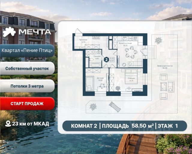 Квартира в ЖК "Новый Зеленоград" | Студия | 23.5 м² | 12 этаж из 18 | Срок сдачи — IV кв. 2026 года Откройте для себя комфорт и экологию в современном жилом комплексе "Новый Зеленоград" в окружении лесов и водоемов всего в 500 метрах от Зеленограда. Экологичная локация: Живите в гармонии с природой, не отказываясь от удобств города! Заповедные леса и водоемы — идеальное место для прогулок и активного отдыха 5 минут до Зеленограда — развитая городская инфраструктура 25 минут до МКАД — удобный выезд Современный комфорт: Архитектура с яркими фасадами и большими окнами Кладовые и просторные входные группы Высокие потолки (2,6 м), продуманные планировки с просторными комнатами и гардеробными Квартиры без отделки или с готовым ремонтом Развитая инфраструктура: Уже открыты детский сад и начальная школа с современными образовательными программами Магазины, кафе, аптеки, пункты выдачи и сервисы на первых этажах Игровые площадки для детей разных возрастов Спортивные площадки и футбольное поле, скейтпарк и зона воркаут для активного образа жизни Безопасность и удобство: Благоустроенные дворы без машин, видеонаблюдение Автомобильная парковка на территории Собственная управляющая компания Финансовые условия и программы покупки: Все виды ипотеки, включая гос. поддержку с высоким процентом одобрения Рассрочка до 3 лет — покупка квартиры стала еще доступнее ЖК "Новый Зеленоград" — идеальный выбор для тех, кто ценит экологию, комфорт, развитую инфраструктуру и выгодные условия покупки. Узнайте подробности и забронируйте квартиру у наших менеджеров!