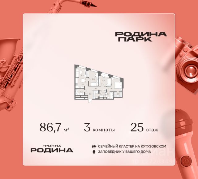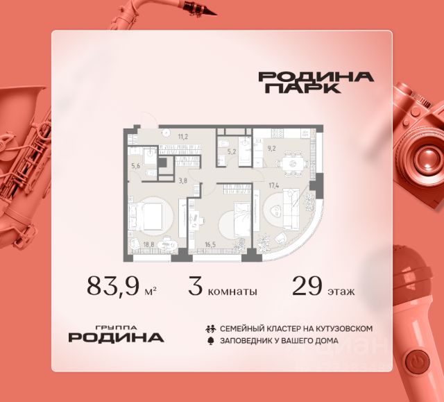 В жилом кластере Родина Парк рядом с природным заказником Долина реки Сетунь продаётся 3-комнатная квартира. Продуманная европланировка, которую легко зонировать под ваши запросы. Потолки от 3,1 м. "Родина Парк" — премиальный семейный кластер с образовательным медиакластером, строящийся на западе Москвы в окружении природного заповедника "Долина реки Сетуни". • Скидки недели на избранный пул лотов • Рассрочка 0% на выгодных условиях до 2 лет • Семейная ипотека, подбор комбо-вариантов ипотечных программ прямо в офисе продаж • Скидки 8% при 100% оплате или ипотеке. ЛОКАЦИЯ: 8 минут пешком до станции БКЛ "Давыдково". 12 минут на автомобиле до Нового Арбата. Удобные выезды на Кутузовский проспект, Аминьевское шоссе. ИНФРАСТРУКТУРА И СЕРВИСЫ ДЛЯ ЖИТЕЛЕЙ - Уникальная экосистема для развития, здоровья и творчества на территории 3,5 Га: - Первый в России образовательный медиакластер (с участием Русской медиагруппы) для творческого развития детей и взрослых с возможностью получить востребованную профессию в сфере шоу-бизнеса. - Инфраструктура и сервисы для семей с детьми на территории жилого кластера (частный детский сад, детские игровые пространства, творческие студии для занятий музыкой и танцами, безопасная и комфортная среда для детей и родителей), событийно-культурная площадка для проведения семейного досуга); - Здоровая среда (биохакинг-центр, фитнес-зал и спортивная инфраструктура во дворе, медитационные пространства, инженерные решения для освещения, свежего воздуха и очистки воды, сервисы красоты и поддержания активного долголетия); - Сервисы заботы (инфраструктура комфорта - подземный паркинг, кладовые, колясочные, консьерж- сервис, умный дом, мобильное приложение, профессиональная управляющая компания, сервисы охраны и обеспечение абсолютной безопасности) - Комьюнити резидентов (социальные пространства для дружеского и делового общения - летний атриум с уличным кинотеатром, зоны отдыха, кафе и рестораны, комьюнити-сервис с культурно- событийной программой в медиакластере); - Модуль благосостояния (комфортные пространства для работы и саморазвития - коворкинги и переговорные). ИНФРАСТРУКТУРА РАЙОНА: Насыщенная образовательная среда: филиалы МГИМО, МГУ, МГТУ, Сколково. Топовые школы: 6 лучших частных школ Москвы и области (Forbes) в 10 минутах езды. Природное окружение для пеших прогулок, спорта и отдыха. "Родина Парк" — это место, где растут и дети, и ваши возможности. Экосистема, где всё подчинено развитию — физически, профессионально, творчески.