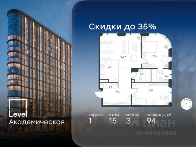 Этот лот вы можете приобрести с ПВ всего 30% в рассрочку под 0%. Продаются 3-к апартаменты площадью 59.6 кв.м. на 2-м этаже 29 этажного дома в "NAMETKIN TOWER" от ГК ОСНОВА. Есть возможность приобретения лотов с отделкой white box. Nametkin Tower с двухуровневым подземным паркингом и обширной инфраструктурой будет построен в районе Черемушки по адресу: ул. Намёткина, вл. 10, рядом с Битцевским лесопарком и Воронцовским парком. Архитектура от известного бюро Mecanoo из Нидерландов. Новый комплекс на Наметкина, 10 включает 4 секции переменной этажности 24-29 этажей, двухуровневый подземный паркинг. В каждой секции запроектированы лобби с мягкими рекреационными зонами, консьерж-сервисом 24/7, колясочными, комнатами для матери и ребенка и гостевыми санузлами. На 25 этаже расположится досуговая зона на открытом воздухе с выходом на тематические площадки. К услугам резидентов Nametkin Tower будет предоставлена максимально насыщенная внутренняя инфраструктура: ресторан, супермаркет, спортивный центр, зал для проведения мероприятий, теннисные и бильярдные столы, коворкинг, Sky Bar, а также собственный медицинский центр и SPA. Дополнением станет благоустройство по авторской концепции Mecanoo, разделенное на два пространства: общественное вдоль улицы Намёткина, где будут располагаться входы в ресторан и магазины, а также приватное дворовое пространство, выполненное в концепции ""двор без машин"". В основе проектирования всех лотов лежит принцип оптимальной эргономики пространства и большая площадь остекления с высотой оконных проемов 2,7 м.