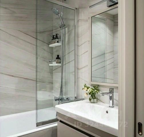 Квартира с тремя спальнями общей площадью 280 м² в клубном комплексе делюкс-класса "Парк Палас" на "Золотой Миле" в Хамовниках. Квартира с новой отделкой расположена на 3-м этаже. В оформлении использованы натуральные материалы — мрамор от компании "КАМ", колонна из кварцита от Aisberg, гранитные подоконники Magma, на полу тонированный дуб. Остальные материалы: алебастр, латунь, эксклюзивный шпон, натуральные камни, перламутр, хрусталь, авторское стекло, шелк, бархат.