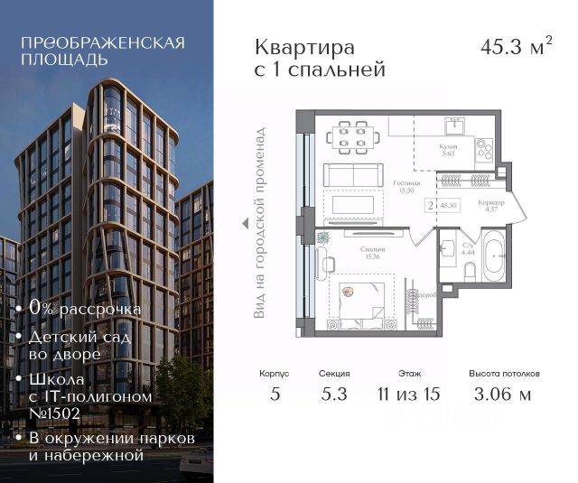 Продается 1-комнатная квартира в ЖК "НАЗАРЕ'" Общая площадь - 40.30 Тип дома - монолитный Этаж - 8 Год сдачи - 2028 Предлагается квартира площадью 40.30 кв. м в новом современном квартале на востоке Москвы, прямо у станций метро и МЦК "Бульвар Рокоссовского". Квартира располагается в корпусе 5 на 8 этаже комплекса бизнес-класса "НАЗАРЕ'". Великолепная транспортная доступность: • 2 минуты ходьбы до метро и МЦК "Бульвар Рокоссовского"; • 3 минуты на авто - удобный выезд на СВХ (МСД); • 10 минут на авто до национального парка "Лосиный остров"; • 10 минут на авто до "Измайловского парка"; • 15 минут до авто до парка "Сокольники"; • 15 минут занимает выезд на ТТК, • 18 минут на авто до Садового кольца. Индивидуальная архитектура в современном стиле: • шесть башен переменной высотности от 24 до 43 этажей, в том числе одна высотная 143-метровая доминанта, которая станет достопримечательностью востока Москвы; • авторы архитектурной концепции - знаменитое бюро СПИЧ (среди их работ - башня "Федерация", новое здание Третьяковской галереи, реконструкция БСА "Лужники" и др.); • торгово-развлекательный комплекс с фитнес-центром, детской игровой комнатой и открытыми террасами прямо возле квартала; • дизайнерские лобби от бюро ABOVE ARCHITECTURE с панорамными окнами, интерьерами в теплой цветовой гамме и мягкой зоной ожидания располагаются в каждой башне; • корпуса расположены так, чтобы из окон открывались потрясающие виды на закаты и рассветы, зеленые панорамы или огни мегаполиса; Особенности расположения "НАЗАРЕ'" находится максимально близко к метро, и в то же время проект вписан в уже существующую инфраструктуру зеленого столичного района Богородское. Это обеспечивает быстрый доступ ко всем нужным объектам инфраструктуры (детские сады, школы, медцентры, магазины, салоны красоты, фитнес-клубы, футбольные поля, спортивные школы), а также к живописным зеленым зонам - национальному парку "Лосиный остров", парку "Сокольники", Черкизовскому детскому парку, Измайловскому лесопарку с усадьбой Измайлово. Собственная инфраструктура и благоустройство Шесть башен квартала будут объединены цокольным этажом, в который можно попасть как с улицы, так и со стороны лобби. Здесь разместятся необходимые для комфортной повседневной жизни кофейни, супермаркет, рестораны, магазины и многое другое. В комплексе предусмотрен вместительный двухуровневый подземный паркинг с келлерами для хранения сезонных вещей. Во дворе комплекса "НАЗАРЕ'" будут места как для спокойного отдыха и работы, так и для игр и спорта. Здесь организованы игровые площадки для детей всех возврастов, места для стритбола и тенниса, а также зона с природным ландшафтом и коворкинг с экологичной деревянной мебелью.