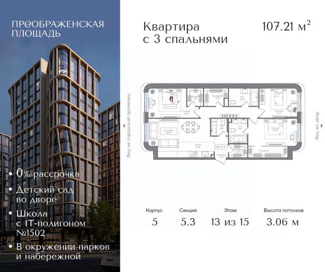 14333 Скидка на паркинг 300 000 рублей! Дизайн проект в подарок! Возможна рассрочка! Предлагается к продаже уникальная евротрёхкомнатная квартира с кухней-гостиной 35 м2 в жилом комплексе Бизнес класса - Вдохновение, расположенном в центральной части района Богородское. ЖК построен в 2023 году, состоит из двух корпусов переменной этажности: из корпуса А высотой от 7 до 10 этажей и корпуса Б от 6 до 9 этажей. Дом небольшой, всего 212 квартир. На площадке от 4 до 6 квартир. Высота потолков - 3,2 метра. Квартира находится на 8 этаже, имеет нестандартную и интересную планировку: Общая площадь 120,3 м2, кухня-гостиная 35 кв.м. с выходом на лоджию, 3 изолированные спальни -14 м2 , 18 м2 , 12м2, 2 санузла, один из них с окном, гардеробная при входе, при желании можно оборудовать открытую террасу. Окна выходят на три стороны. Квартира в данный момент свободной планировки, без отделки, для Вас разработано дизайнерское решение возможного варианта с кухней-гостиной, но можно, если это необходимо, сделать гостиную чуть меньше и добавить еще одну изолированную комнату, дизайн-проект в подарок покупателю, который будет доработан специально для Вас, в соответствии с Вашими пожеланиями. Если это не потребуется, то просто предоставим скидку. Фасад дома стильно задекорирован фибробетоном и клинкерной плиткой. Малоэтажная застройка делает район приятным и удобным для проживания, поскольку трафик на дорогах даже в часы пик низкий, при этом в пешей доступности от комплекса находятся две станции метро: до Бульвара Рокоссовского - 20 минут, до Преображенской площади - 24 минуты, на машине есть несколько вариантов маршрутов выезда на основные магистрали: на проспект Мира можно попасть по Ростокинскому проезду, в центр ведёт Большая Черкизовская улица, но местные жители используют и набережную реки Яузы. В пешей доступности вся необходимая инфраструктура: школа 1797 и детский сад Теремок, детская городская поликлиника 28 и консультативно-диагностический центр 2, рядом магазины Дикси, Пятёрочка, Магнит, Красное/Белое, пункт выдачи заказов WB и Озон, стадион Спартаковец. Закрытый двор дома имеет систему видеонаблюдения. Для детей во дворе имеется детская площадка с горкой и качелями, скамейками для отдыха. В каждой секции есть место консьержа, колясочная и туалет. Входные группы оформлены в приятной нейтральной гамме. Стены оштукатурены, окрашены и облицованы керамогранитной плиткой. В распоряжении жильцов пассажирский и грузовой лифт. Подземный паркинг рассчитан на 123 места, цена 2 500 000, при по покупке квартиры скидка на паркинг 300 000 рублей. Квартира продается в прямой продаже, никто не зарегистрирован, полная стоимость в договоре.