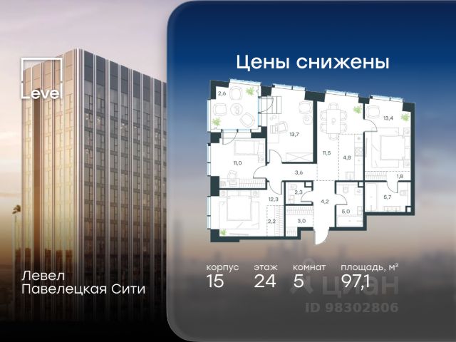 Цена указана с учётом скидки при 100%-й оплате, несубсидированной ипотеке, рассрочке (кроме программы "Рассрочка 0%"). В Даниловском районе столицы (ЮАО) продаётся 2-комнатная квартира площадью 42.70 кв.м без отделки. Квартира расположена на 2 этаже 27-этажного корпуса 14 в жилом комплексе бизнес-класса Левел Павелецкая Сити. Высота потолков 3.00м. Престижная локация Жилой комплекс бизнес-класса Левел Павелецкая Сити расположен в престижном Даниловском районе Москвы - историческом центре города в окружении парков, Москвы-реки и новейшей инфраструктуры. В 20 минутах пешком есть 3 станции метро, а в 5 минутах езды на авто - ТТК и Садовое кольцо. - 15 мин. пешком до метро "Павелецкая"; - 20 мин. пешком до станций "Тульская" и "Серпуховская"; - 8 мин. на авто до Кремля; - 10 мин. на авто до парка Горького и парка "Зарядье"; - 20 мин. на авто до башен "Москва-Сити". Авторская архитектура Авторская архитектура Авторская архитектурная концепция разработана бюро СПИЧ. Облик корпусов этапов 1 и 2 отсылает к стилистике архитектуры классического Нью-Йорка и золотой эпохи Голливуда. Корпуса этапа 4 вдохновлены эстетикой ар-деко. Умное линейное расположение корпусов гарантирует потрясающие виды на исторический центр и Москву-реку из большинства квартир. Дизайнерские лобби Изысканные интерьеры лобби жилого комплекса отсылают к классическим фильмам золотой эпохи Голливуда. Классика в жилом комплексе Левел Павелецкая Сити - не имитация, а современное осмысление лучшего в этом стиле. В каждом вестибюле оборудованы стойки ресепшен, комфортные зоны ожидания, гостевые санузлы, мойки для лап животных, колясочные. В корпусах по 3-4 лифта с прямым доступом в паркинг. Площадь лобби - от 47,9 до 114,9 кв. м, высота потолков - до 5,46 м. Благоустройство и инфраструктура Для создания благоустройства было приглашено 2 ведущих бюро - ADM и GAFA. Разноуровневое пространство вмещает в себя игровые площадки для детей всех возрастов, тропы здоровья для пеших прогулок, крытые аллеи с качелями, места для работы на свежем воздухе, многофункциональные спортивные площадки - зоны уличных тренировок, столы для пинг-понга, зоны командных игр. Общая площадь закрытого двора - 4,63 га. Комфорт - это когда рядом всё, что нужно для жизни. В жилом комплексе Левел Павелецкая Сити размещены 85 коммерческих помещений, где откроются супермаркеты, кафе, аптеки и многое другое. В составе проекта также предусмотрены собственный фитнес-клуб, развивающий центр Летово Кидс. Технологии и безопасность - Вайфай в лобби и на придомовой территории; - Автоматизированная система контроля и учета ресурсов; - Круглосуточное видеонаблюдение и охрана; - Круглосуточная связь с охраной через приложение, телефон или кол-центр; - Контроль доступа по биометрической системе распознавания лица; - Усиленный сотовый сигнал в лифтах и паркинге; - Распознавание номеров автомобилей при въезде/выезде в/из паркинга.