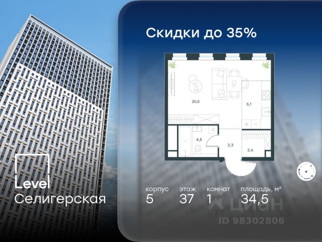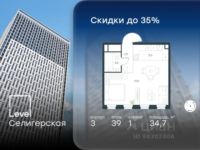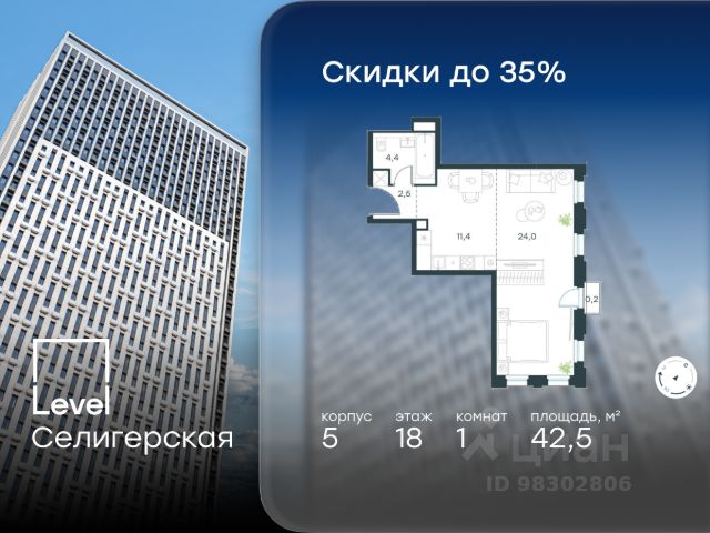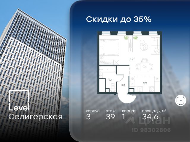 Цена указана с учётом скидки при 100%-й оплате, несубсидированной ипотеке, рассрочке (кроме программы "Рассрочка 0%"). В жилом квартале, расположенном в южной части района Западное Дегунино, продаётся 2-комнатная квартира площадью 66.10 кв.м без отделки. Квартира расположена на 5 этаже 40-этажного корпуса 3 в жилом комплексе комфорт-класса Level Селигерская (компания Level Group/Левел групп). Отличная транспортная доступность: - 10 мин. пешком до станции метро "Селигерская" от корпусов 1-й очереди; - 10 мин. пешком до станции метро "Верхние Лихоборы" от корпусов 2-й очереди; - 20 мин. пешком до станции МЦД-3 "Моссельмаш"; - 11 мин. на авто до МКАД; - 13 мин. на авто до ТТК; - 16 мин. на авто до Садового кольца. Расположение Район отличается богатой социальной инфраструктурой: школы, детские сады, поликлиники, магазины, фитнес-клубы, торговые центры - всё близко к дому. Рядом с Level Селигерская расположено 5 парковых зон. В 3 минутах от дома расположен перспективный сквер-парк. В 10 минутах пешком находится парк им. Святослава Фёдорова, в 13 минутах на велосипеде - парк "Ангарские пруды". В 7-11 минутах на автомобиле - два крупных природных объекта: Тимирязевский парк и Главный ботанический сад Российской академии наук. Благоустройство Внутренние дворы жилого комплекса огорожены от машин, а их функциональное наполнение отличается в зависимости от очереди строительства. На территории 1-й очереди будут: детская площадка, воркаут-зона, места для тихого отдыха и активных игр, а также сенсорный сад и большой луг. Во 2-й очереди жителей ждут уютные навесы с качелями, павильон-читальня, волейбольная площадка, беседки, а также детские и спортивные площадки. Технологии и инженерия Для входа на территорию комплекса предусмотрен единый ключ доступа. Все общественные зоны оснащены камерами видеонаблюдения, по заявке собственнику предоставляется возможность просмотра изображения отдельных видеокамер на его мобильном устройстве. При въезде в паркинг функционирует система распознавания госномеров. Кроме того, для комфорта жителей создано мобильное приложение, с помощью которого можно удаленно контролировать доступ на придомовую и жилую территории. Другие преимущества жилого комплекса - Высокая освещенность квартир: в большинстве из них не меньше трёх окон; - Супермаркет, магазины, кафе, пекарни и многое другое на первых этажах домов; - Частный детский сад; - Стильные дизайнерские лобби с высокими потолками до 4,9 м и окнами в пол, для питомцев предусмотрена лапомойка; - 20+ планировочных решений: от студий до семейных квартир; - С каждого этажа дома на лифте можно спуститься в подземный отапливаемый паркинг.