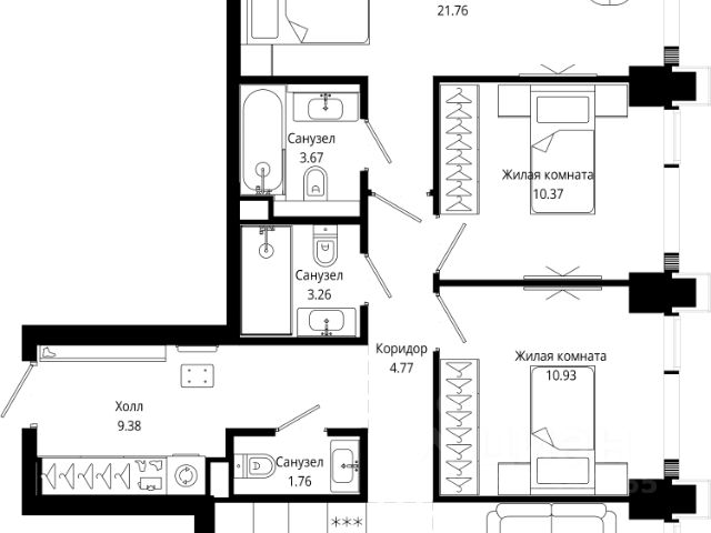 • ✅ Минимальная площадь: 51 м²