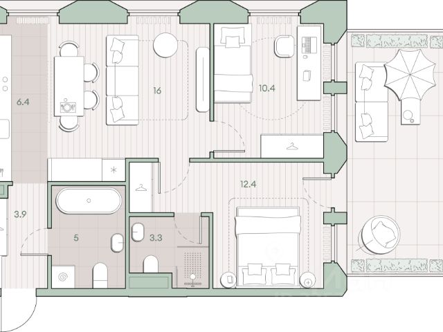 О квартире Продаётся 2-комнатная квартира общей площадью 54.7 кв.м. без отделки. Квартира расположена на 8 этаже корпуса 5.7 в жилом комплексе бизнес-класса "Среда на Лобачевского" в пешей доступности от метро "Аминьевская". О жилом комплексе "Среда на Лобачевского" полностью соответствует критериям современного жилого пространства. Взяв за основу рациональный подход, мы гармонично соединили дизайн, актуальные тренды и функциональность. Продуманный современный экстерьер и функциональные планировки внутри, приватные пространства и разнообразные досуговые зоны для каждого члена семьи — все это "Среда на Лобачевского". Инфраструктура Район отлично развит и наполнен жизнью, здесь уже есть вся необходимая инфраструктура — детские сады, школы, медучреждения, торговые центры, благоустроены парки для прогулок и отдыха, удобен и легкодоступен городской транспорт. Рядом расположены учебные корпуса крупных университетов — МГУ, МГИМО и РАНХиГС. Школы и детские сады в районе занимают высокие позиции в городских рейтингах, поэтому вам не придется беспокоиться о качестве образования детей. Как и об отдыхе: поблизости расположены живописные пруды, реки и парки. Это Парк Олимпийской деревни, Парк имени 50-летия Октября, Мещерский парк и Очаковские пруды. Теперь поставить галочки в еженедельном чек-листе "спорт-прогулки-встречи с друзьями" можно, не покидая любимый район. Особенности Особое внимание в проекте уделяется созданию функциональных пространств не только внутри дома, но и за его пределами. В ландшафтном парке "Среды на Лобачевского" расположены крытые зоны для спокойного времяпровождения, места для активного отдыха и спорта, коворкинг, соседский комьюнити-центр, водные объекты. —Ландшафтный парк во дворе. —Водный сад с зонами отдыха. —Зоны коворкинга. —Дизайнерские гранд-лобби. —Бесключевой доступ. —Подземный паркинг.