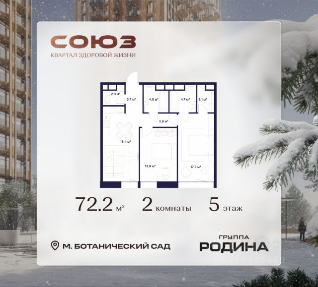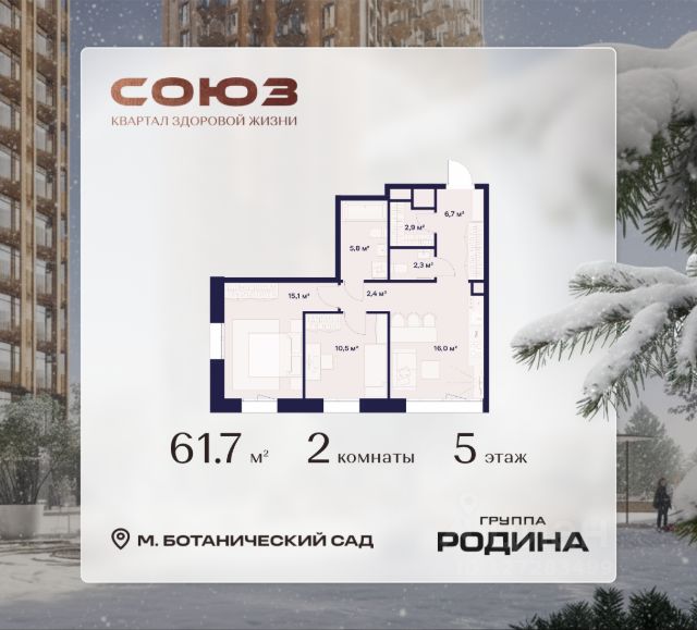 Рассрочка 0% Продаётся 2-комнатная квартира площадью 69.7 м² на 7 этаже в Жилом Комплексе "Союз". Квартал здоровой жизни премиум-класса с рекордным количеством олимпийских видов спорта: - Ледовая арена для хоккея и фигурного катания, - Футбольные поля для тренировок, - Спортивный зал для фехтования, - Бассейн на 6 дорожек, - Центр единоборств, - 4 крытых площадки для настольного тенниса, - 7 теннисных кортов (крытых и открытых), - 4 крытых площадки для сквоша, - Легкоатлетический стадион, - Площадки для баскетбола и волейбола. Уникальные форматы квартир с мастер-спальнями, приватными террасами, балконами, а также пентхаусы с открыточными видами на город. Все квартиры продаются с отделкой Shell&Core и панорамным остеклением. Расположение Пешком: - 2 мин. до парка "Сад Будущего"; - 6 мин. до ст. м. "Ботанический сад"; - 6 мин. до ст. МЦК "Ботанический сад"; - 6 мин. до парка "Леоновская роща"; На автомобиле: - 2 мин. до СВХ (МСД); - 5 мин. до Проспекта Мира; - 10 мин. до ТТК; - 15 мин. до Садового кольца; - 25 мин. до аэропорта "Шереметьево". Благоустройство - собственная спортивная инфраструктура 7 Га; - зона для пикников; - игровые и спортивные площадки для детей всех возрастов; - розарий, а также сосновые, каштановые и дубовые аллеи; - площадки под открытым небом для занятий спортом и йоги; - игровые комнаты для детей; - лаунж-зона для резидентов; - просторная переговорная для деловых встреч; - премиальный ресторан "Шабада" Сосо Павлиашвили с водными арт-объектами на прогулочной аллее, садом ароматных трав и сценой под открытым небом; - кафе, химчистки, аптеки и супермаркеты рядом с домом. Окружение - 8 парков: Сад Будущего, Леоновская роща, Хуамин, Главный ботанический сад РАН, Шереметьевская дубрава, Останкино, парк спорта "Яуза", пойма реки Яуза и музей-усадьба "Останкино"; - 3 ВУЗа: ВГИК, РГСУ, МГПУ; - 12 школ, в том числе: школа 1499 им. И.А. Докукина (топ 100), Brookes Moscow, IThub школа; - 18 детских садов, в том числе билингвальный ALERTUM KIDS; - один из крупнейших океанариумов Европы "Москвариум"; - один из крупнейших в Европе торгово-развлекательных центров "Европолис".