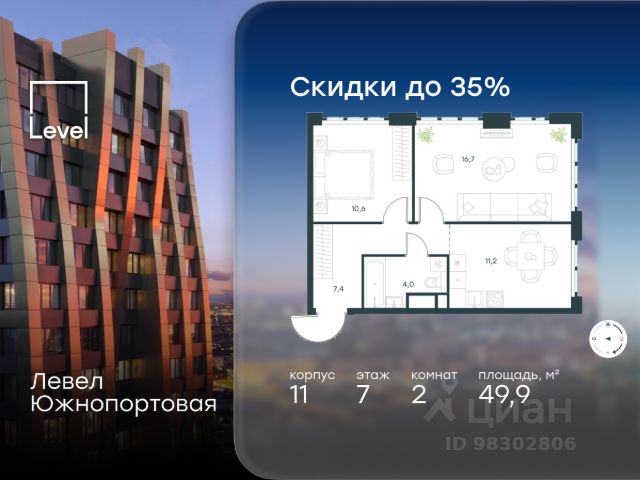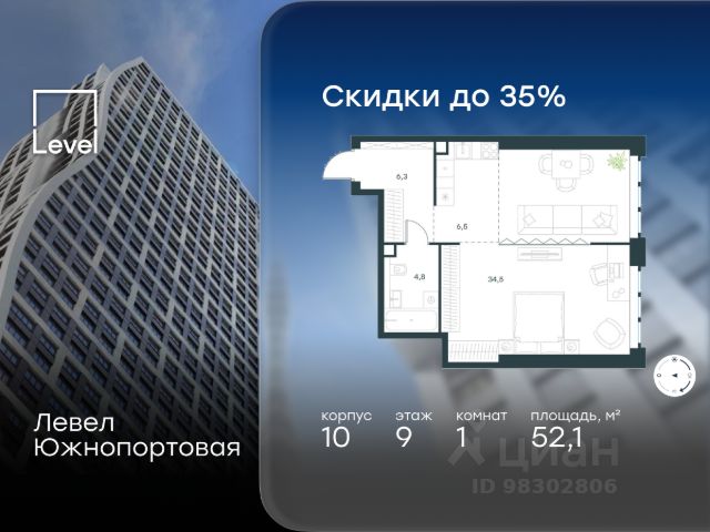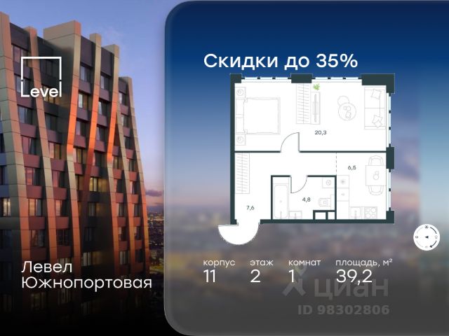 Цена указана с учётом скидки при 100%-й оплате, несубсидированной ипотеке, рассрочке (кроме программы "Рассрочка 0%"). В северной части района Печатники продается 3-комнатная квартира площадью 57.40 кв.м без отделки. Квартира расположена на 47 этаже 47-этажного корпуса 2 в жилом комплексе комфорт-класса Левел Южнопортовая (компания Level Group/Левел групп). Отличная транспортная доступность: - 10 мин. пешком до станции метро "Кожуховская"; - 20 мин. пешком до станции МЦК "Дубровка"; - 3 мин. на авто до ТТК; - 13 мин. на авто до Садового кольца; - 15 мин. на авто до Бульварного кольца. Продуманный архитектурный проект: - авторская архитектура от бюро СПИЧ; - уникальные виды на реку, парки и достопримечательности города; - высота потолков в квартирах до 6 м; - окна высотой до 1,87 м с высоким коэффициентом сопротивления теплоотдаче. Расположение: Жилой комплекс Левел Южнопортовая строится в северной части района Печатники - самой приближенной к центру. Здесь будет сформирован новый район "Южный порт", где построят крупный жилой и общественно-деловой центр, аналогичный Москва-Сити. В течение 10-12 лет в этом месте появятся не только жилые дома, но и развитая инфраструктура для жизни и работы. А еще совсем рядом находится набережная Москвы-реки, где планируется построить причалы для речных трамвайчиков и канатную дорогу. Уже сейчас вокруг жилого комплекса работают десятки магазинов и торговых центров, рядом расположено 6 парков, среди которых музей-заповедник "Коломенское". В 10 минутах пешком - 2 муниципальных и 2 частных детских сада, 7 общеобразовательных школ. Внутренняя инфраструктура: Для отдыха жителей в каждом корпусе предусмотрено лобби, оснащенное местами для отдыха, гостевыми санузлами и лапомойками, а в отдельных корпусах - камином. За счёт больших окон и высоких потолков пространства будут наполнены воздухом и светом. На первых этажах жилого комплекса откроются магазины, салоны красоты, фитнес-центр. Для детей строятся собственные детский сад и школа. Благоустройство: Внутренний двор комплекса разработан совместно с бюро GAFA. Основная идея - создать аналог Центрального парка в Нью-Йорке, гармонично сочетая высотные здания и большое изолированное парковое пространство. Вся площадь двора-парка будет огорожена и составит более 2 га, из которых 45% - озеленение. Одним из самых важных ландшафтных элементов здесь станет небольшая речка, наполняющаяся во время дождя. Вокруг неё появится сеть из островов, внутри которых расположатся тематические зоны спорта и отдыха. Технологии и инженерия: - автоматическая передача в управляющую компанию показаний квартирных счётчиков; - телефонная связь, телевидение и интернет на базе оптической мультисервисной сети; - гостевой Wi-Fi в лобби и на территории двора; - единый ключ доступа для входа на территорию комплекса.