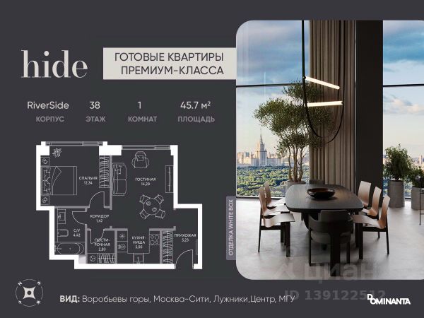 Лот 555685. С коллегами сотрудничаем 50/50! Предлагается в продажу двухкомнатная квартира в ЖК Hide, башня RiverSide.