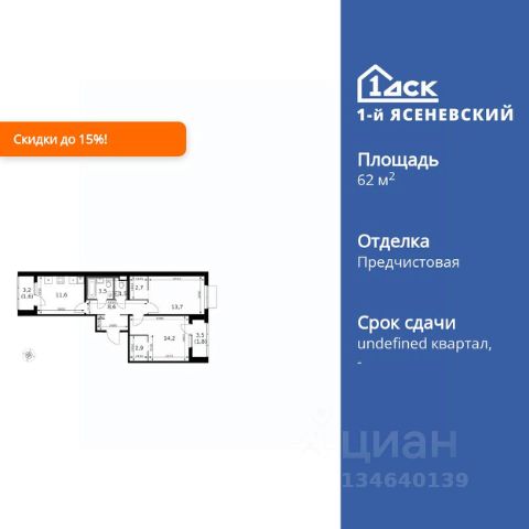 Прямая продажа от застройщика! Жилой Комплекс класса Комфорт Плюс. Продаётся 2-к квартира номер 499 общей площадью 53 кв.м. на 7-м этаже 18 этажного здания. Отделка Whitebox. Цена с учётом скидки. Особенности квартиры: - Квартиры рядом с метро - м. Корниловская 9 мин пешком - 63 га лесопарка за окнами - Школа c it-кластером и бассейном. 2 детских сада - Линейная планировка - максимальная функциональность и удобство. - Увеличенная ширина окна/окон - больше света и визуального простора. - Раздельный санузел - больше удобства для всех членов семьи. - Можно оборудовать рабочее место - комфорт для работы и учёбы. - Просторная кухня - место для семейных ужинов и кулинарных экспериментов. - Кладовая - дополнительное пространство для хранения. - Лоджия - уютное место для отдыха и тишины. Квартира с предчистовой отделкой (White box). Вам не придется заниматься черновыми и трудоёмкими работы, а чистовую отделку и дизайн - сделайте на свой вкус. Информация о комплексе: В жилом комплексе комфорт-плюс класса "1-го Ясеневского" доступны преимущества двух стилей жизни. Ведь в пешей доступности метро, школа с 25-метровым бассейном и IT-кластером и при этом целых 63 га благоустроенного Троицкого лесопарка под окнами, где так приятно дышать свежим воздухом и слушать пение птиц. Собственная закрытая территория "1-го Ясеневского" представляет собой уютный оазис. Здесь и зеленый освещенный бульвар для прогулок, система велодорожек, маленькая городская площадь, кафе, пекарни и кофе поинты. А еще дворы без машин и многоэтажная парковка. Изюминка территории - фруктовые деревья во дворах и городские сады. "1-й Ясеневский" - всего в 1 км от МКАД, на территории новой Москвы. Жилой комплекс, где есть все необходимое для современного человека. Транспортная доступность: До метро "Корниловская" - 12 минут пешком До метро "Тютчевская" - 25 минут пешком До метро "Теплый стан" - 10 минут на транспорте До метро "Ольховая" - 30 минут на общественном транспорте Личный автотранспорт: Выезд на Калужское шоссе - 500 м МКАД - 1 км Внутренняя инфраструктура: ЖК "1-й Ясеневский" можно назвать идеальным местом для жизни семьи с детьми. Здесь буквально за домом находится Троицкий лесопарк - излюбленное место прогулок молодых родителей. А во внутренних дворах под детские площадки выделены специальные зоны. Они оборудованы всем, что нужно для счастливого детства: современными и максимально безопасными качелями, песочницами и лазалками. Оборудование и игровые сценарии на детских площадках спроектированы вместе с командой детских психологов для правильного развития ребенка и для повышения их интереса. Также рядом с домом два детских садика, один из которых уже построен и школа на 1100 мест. Школу по праву можно назвать образцовым учебным заведением. В ней закладываются основы успешного будущего. Здесь есть класс робототехники, IT-кластер, 25-метровый бассейн и прекрасно оборудованные спортзалы.