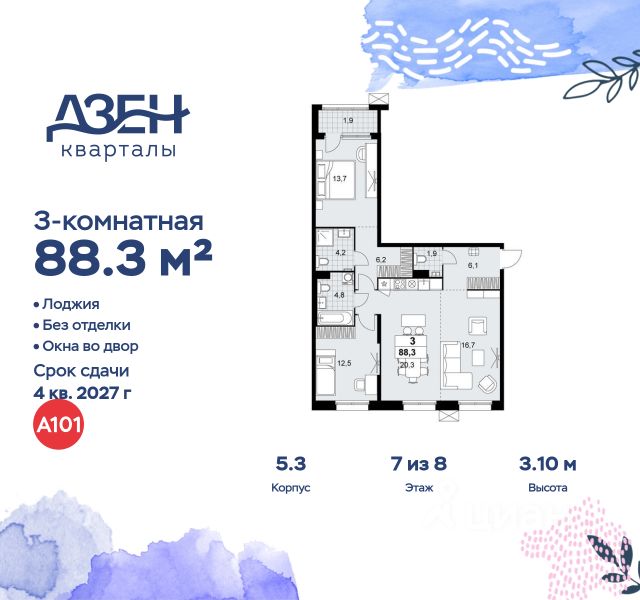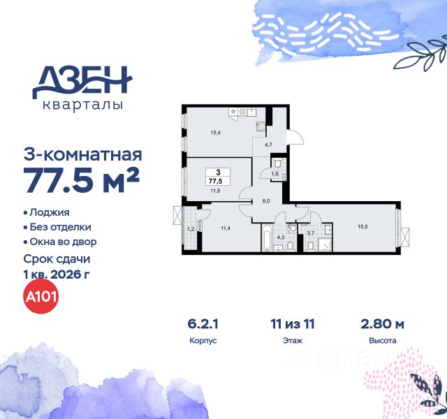 Продается трехкомнатная квартира 206 в новостройке ЖК "Дзен-кварталы" по адресу Москва, ТиНАО, Новомосковский АО, Сосенское С/П, жилой комплекс Дзен-кварталы, 6.2.1, район Коммунарка, Новомосковский административный округ, Москва. Общая площадь квартиры - 77.50 кв. м., этаж 11 из 11, секция 4. Тип проекта, по которому построен дом - монолит, компания-застройщик - ООО "А101". Стоимость квартиры - 24704675 Р. Срок сдачи - 1 квартал 2026. ПРЕДЛОЖЕНИЯ ОТ ЗАСТРОЙЩИКА В ФЕВРАЛЕ 2026: Скидки до 10% на все квартиры. Только в офисах продаж до 28 февраля. Ипотека от 13,9 % для всех! На весь срок. "Семейная ипотека" вернулась. Ставка от 3,5 % на весь срок! Без удорожания! Выгодное ипотечное комбо: Ипотека от 2200 р./мес. и от 6 % после рождения ребёнка! Ипотека для всех "Держи пять!" - ставка 5 % на 2 года! *более подробную информацию по скидкам и акциям уточняйте в отделе продаж ЖК "Дзен-кварталы" на юго-западе Москвы расположен вдоль берегов Ивановского пруда и реки Варварки, гармонично сочетает насыщенную городскую инфраструктуру и мягкое умиротворение природы. Архитектурные решения домов стандарт-, комфорт- и бизнес-класса переменной этажности объединяют скандинавскую функциональность и утонченный японский минимализм. Район отличается высокой транспортной доступностью - всего 5 минут пешком до станций метро "Новомосковская" и "Потапово". Кварталы с собственной благоустроенной набережной, парками, тихими дворами без машин, зелёными скверами располагают к спокойному созерцательному отдыху. На первых этажах откроются магазины, спортивные залы, поликлиники, аптеки, кофейни, пекарни, фитнес-залы, салоны красоты. В районе появится собственная школа, расположенная у воды, и 2 детских сада. В декоре лобби использованы японские мотивы - отделка стен светлым деревом и натуральным камнем. На подземных этажах расположены паркинги и кладовые. Преимущества "Дзен-кварталов" - ст. метро "Новомосковская" и "Потапово" - 5 мин. пешком - удобный выезд на трассу Солнцево - Бутово - Варшавское шоссе - уникальное благоустройство в стиле Japandi - благоустроенная набережная - насыщенная инфраструктура