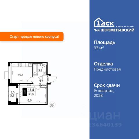 ДОПОЛНИТЕЛЬНАЯ СКИДКА ДО 10% В ОФИСЕ ПРОДАЖ! Прямая продажа от застройщика! Жилой Комплекс класса Комфорт Плюс. Продаётся квартира-студия номер 75 общей площадью 26.5 кв.м. на 9-м этаже 16 этажного здания. Отделка Whitebox. Цена с учётом скидки. Особенности квартиры: - Линейная планировка - максимальная функциональность и удобство. - Можно оборудовать рабочее место - комфорт для работы и учёбы. - Линейная кухня - функциональность и практичность в одном решении. - Гардеробная - удобство для хранения и организации вещей. Квартира с предчистовой отделкой (White box). Вам не придется заниматься черновыми и трудоёмкими работы, а чистовую отделку и дизайн - сделайте на свой вкус. Информация о комплексе: ЖК 1-й Шереметьевский расположен в самом центре Подрезково, от него всего 6 минут пешком до одноименной станции ж/д и планируемой к открытию МЦД-3. В комплексе яркие и уютные, лобби, большая колясочная, лапомойка. Благодаря гостевому санузлу на 1 этаже прогулки станут по-настоящему долгими. Два лифта пассажирский и грузовой.Во всех корпусах 1-го Шереметьевского там устроены кладовые, а в корпусах 3-5 есть подземный паркинг. В ЖК 1-й Шереметьевский разнообразие площадей и планировок. Большие кухни-гостиные: в них два окна или больше. Во всех квартирах площадью от 40 кв.м. и выше спроектировано 2 санузла. Большие остекленные лоджии с отделкой. Система Умная квартира, реализованная в 1-м Шереметьевском. В каждой квартире установлены датчики протечек и запорные вентили с электроприводом, которые самостоятельно перекрывают воду в случае аварии. Мобильное приложение управляет группами электропотребителей: даже если вы забыли утюг включенным, можно обесточить его дистанционно. Транспортная доступность: - Общественный транспорт: До ближайших станций метро Планерной и Войковской около 40-50 минут на автобусе. 6 минут до ЖД станции Подрезково (МЦД-3) - Личный автотранспорт: Удобный выезд на Ленинградское шоссе позволяет быстро добираться до МКАДа и в центр Москвы, до платной трассы М11 и в аэропорт Шереметьево. 3 минуты до Ленинградского ш. 10 минут до платной трассы М11 15 минут до МКАД 20 минут до ст. м Войковская 25 минут до ст. м Планерная Внутренняя инфраструктура: 1-й Шереметьевский не только сокращает время, которое вы будете проводить в дороге. Но и предпринимает многое, чтобы вы меньше ездили и чаще ходили. На первых этажах корпусов разместятся фрешмаркеты и пункты выдачи маркетплейсов, салоны красоты и химчистки, кофейни и пекарни всё, что необходимо изо дня в день, но не заслуживает отдельной поездки на машине или такси. В квартале будут построены собственные школа и детский сад. Школа рассчитана на 1100 учеников. В ней будут 25-метровый бассейн и просторный атриум, медиатека. Детский сад рассчитана на 400 малышей. Здесь стильный дизайн и комфортные группы, большой физкультурный зал и просторный зал для занятия музыкой. Дворы без машин. Безопасные детские площадки. Вдоль корпусов органи