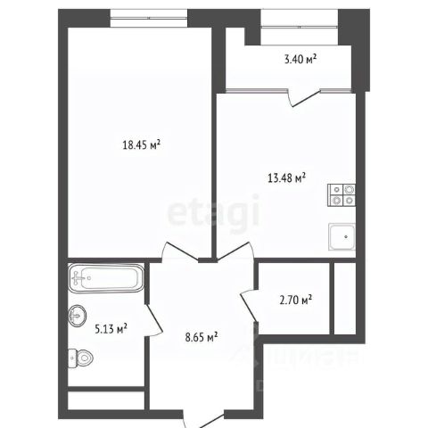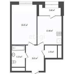 Структура комнат: кухня-гостиная, спальня, детская, прихожая, ванная комната