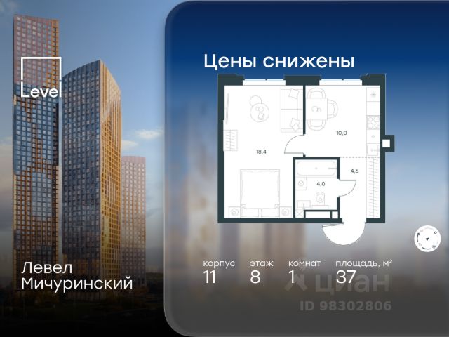 Скидка 35% на все квартиры в жилом комплексе Левел Мичуринский, этапы 3 и 4 (корпуса 7-13). Цена указана с учётом скидки при 100%-й оплате, несубсидированной ипотеке, рассрочке (кроме программы "Рассрочка 0%"). В жилом квартале, расположенном на границе с природным заказником "Долина реки Очаковки", продаётся 2-комнатная квартира площадью 44.00 кв.м без отделки. Квартира расположена на 10 этаже 12-этажного корпуса 9 в жилом комплексе бизнес-класса Левел Мичуринский (компания Level Group/Левел групп). Отличная транспортная доступность: - от 10 мин. пешком до станции метро "Мичуринский проспект" - 15 мин. пешком до станции метро "Аминьевская" - 7 мин. на авто до МКАД - 10 мин. на авто до ТТК - 15 мин. на авто до Москва-Сити Продуманный архитектурный проект: - Выразительная архитектура от известных бюро: корпуса 1-6 - бюро СПИЧ, корпуса 7-13 - архитектурное бюро Анатолия Борисова; - Из окон открываются живописные виды на парки, Москва-Сити и МГУ; - Высокие потолки до 6,35 м; - Стильные лобби с окнами в пол и высокими потолками до 4,7 м; - С каждого этажа дома на лифте можно спуститься в подземный отапливаемый паркинг. Расположение: Жилой комплекс Левел Мичуринский строится в одном из самых зелёных районов Москвы - Очаково-Матвеевское. Этот уголок столицы идеален для поддержания здорового образа жизни. В шаговой доступности от проекта находятся заказник "Долина реки Очаковки" - 1 мин. пешком и Очаковский парк - 7 мин. пешком. На велосипеде можно добраться до таких парков, как "Событие", парк Олимпийской деревни, парк 50-летия Октября и парк Школьников. В 15 минутах езды на авто расположено более 30 детских садов (из них 14 в пешей доступности), 32 школы (из них 13 в пешей доступности) и 14 вузов. Также в ближайшем окружении - более 25 медицинских учреждений, 11 спортивных клубов и 22 продуктовых супермаркета. Внутренняя инфраструктура: На территории жилого комплекса строится три детских сада и школа. На первых этажах домов откроется супермаркет, фитнес-центр, ресторан, кафе и другие сервисы. Подземные этажи займут паркинги: трёхуровневые - в этапах 1 и 2, одноуровневый - в этапах 3 и 4. Преимущества проекта: - 4,5 га благоустроенной территории с видовым мостом, уличным кинотеатром, зонами для тихого отдыха, работы, уличных тренировок, площадки для петанка, футбола, настольного тенниса и пляжного волейбола. - Дизайнерские лобби с панорамным видом на двор, мойками для лап животных и комфортными зонами ожидания. - Безопасность жителей: круглосуточное видеонаблюдение всех зон общего пользования (лобби, лифты, паркинги, детские площадки), система контроля доступа, управление видеодомофоном через мобильное приложение, единый ключ доступа на территорию жилого комплекса. - Технологии и комфорт: высокоскоростной вайфай в лобби и на придомовой территории, автоматическая система контроля и учёта ресурсов, абонентская связь с консьержем, распознавание номеров автомобилей при въезде в паркинг и выезде из не