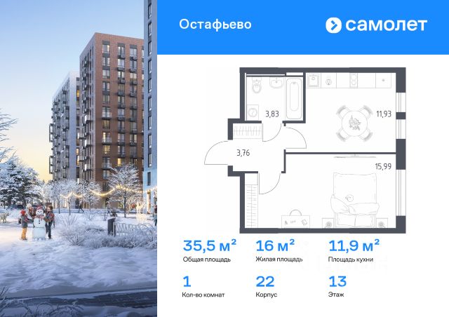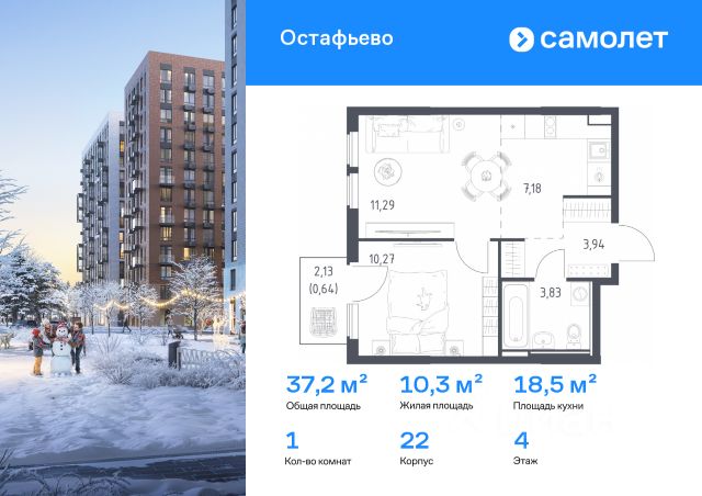 Строим кварталы для жизни с заботой о будущем. Предлагается 1-комнатная квартира комфорт-класса 36,45 кв.м в корпусе 22 на 4 этаже, в ЖК "Остафьево" Квартира без отделки. Доступность опции "отделка" и возможность комплектации мебелью и декором уточняйте у застройщика. Приобрести квартиру возможно по специальным акциям от застройщика, с текущими условиями акций можно ознакомиться в блоке "Акций". Цена динамическая и может отличаться, уточняйте актуальность у застройщика. "Остафьево" — масштабный жилой комплекс в Новой Москве, рядом с одноименным музеем-усадьбой и городским парком "Барыши". До станций МЦД "Щербинка" и "Остафьево" можно добраться на автомобиле за 57 минут. Часть домов уже сдана, на территории открыты две школы и три детских сада, а в будущем будет построена поликлиника, ТЦ, еще одна школа и три детских сада. Все необходимое рядом: на первых этажах домов работают магазины, аптеки и кафе. Дворы — приватные мини-парки без машин и посторонних. Кроме игровых площадок, для детей обустроили тематический плейхаб "Маяк". В будущем появятся плейхаб "Алиса в стране чудес", арт-объект "Тропа зеркал", а также большой ландшафтный парк. В квартале — монолитные дома комфортной высоты, от 10 этажей. Светлые фасады украшают кирпичные вставки в теплых природных оттенках.