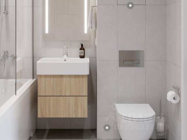 Есть гардеробная и отдельные туалет с ванной. Установлен душ в строительном исполнении.