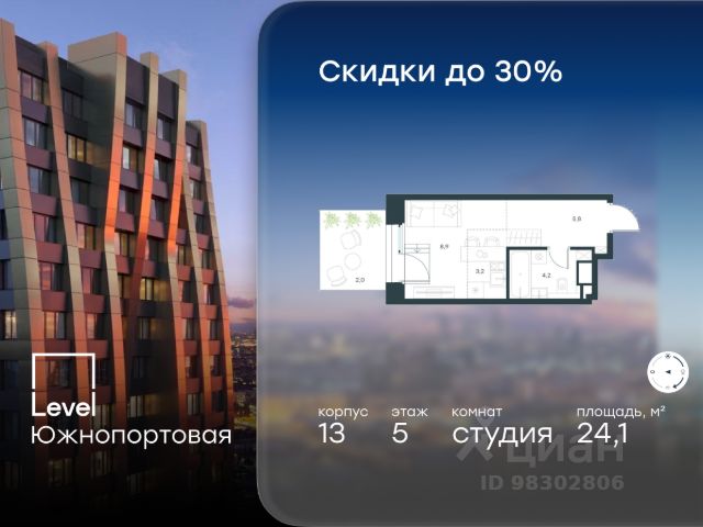 Цена указана с учётом скидки при 100%-й оплате, несубсидированной ипотеке, рассрочке (кроме программы "Рассрочка 0%"). В северной части района Печатники продается 2-комнатная квартира площадью 64.80 кв.м без отделки. Квартира расположена на 9 этаже 49-этажного корпуса 8 в жилом комплексе комфорт-класса Level Южнопортовая (компания Level Group/Левел групп). Отличная транспортная доступность: - 10 мин. пешком до станции метро "Кожуховская"; - 20 мин. пешком до станции МЦК "Дубровка"; - 3 мин. на авто до ТТК; - 13 мин. на авто до Садового кольца; - 15 мин. на авто до Бульварного кольца. Продуманный архитектурный проект: - авторская архитектура от бюро СПИЧ; - уникальные виды на реку, парки и достопримечательности города; - высота потолков в квартирах до 6 м; - окна высотой до 1,87 м с высоким коэффициентом сопротивления теплоотдаче. Расположение: Level Южнопортовая строится в северной части района Печатники - самой приближенной к центру. Здесь будет сформирован новый район "Южный порт", где построят крупный жилой и общественно-деловой центр, аналогичный Москва-Сити. В течение 10-12 лет в этом месте появятся не только жилые дома, но и развитая инфраструктура для жизни и работы. А еще совсем рядом находится набережная Москвы-реки, где планируется построить причалы для речных трамвайчиков и канатную дорогу. Уже сейчас вокруг жилого комплекса работают десятки магазинов и торговых центров, рядом расположено 6 парков, среди которых музей-заповедник "Коломенское". В 10 минутах пешком - 2 муниципальных и 2 частных детских сада, 7 общеобразовательных школ. Внутренняя инфраструктура: Для отдыха жителей в каждом корпусе предусмотрено лобби, оснащенное местами для отдыха, гостевыми санузлами и лапомойками, а в отдельных корпусах - камином. За счёт больших окон и высоких потолков пространства будут наполнены воздухом и светом. На первых этажах жилого комплекса откроются магазины, салоны красоты, фитнес-центр. Для детей строятся собственные детский сад и школа. Благоустройство: Внутренний двор комплекса разработан совместно с бюро GAFA. Основная идея - создать аналог Центрального парка в Нью-Йорке, гармонично сочетая высотные здания и большое изолированное парковое пространство. Вся площадь двора-парка будет огорожена и составит более 2 га, из которых 45% - озеленение. Одним из самых важных ландшафтных элементов здесь станет небольшая речка, наполняющаяся во время дождя. Вокруг неё появится сеть из островов, внутри которых расположатся тематические зоны спорта и отдыха. Технологии и инженерия: - автоматическая передача в управляющую компанию показаний квартирных счётчиков; - телефонная связь, телевидение и интернет на базе оптической мультисервисной сети; - гостевой Wi-Fi в лобби и на территории двора; - единый ключ доступа для входа на территорию комплекса.