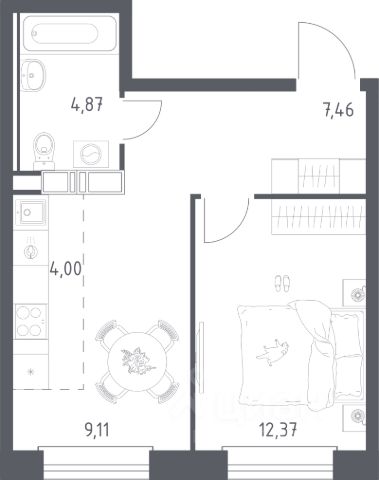 Квартира продается без отделки, что предоставляет отличные возможности для реализации ваших идей в процессе ремонта.