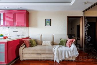 Просторная кухня-гостиная, с зонированием столовой и гостиной. Кухня оборудована встроенной техникой, в частности посудомоечной машиной, холодильником, морозильником сплит системой и прочим необходимым. Так же в гостиной вместительный шкаф купе для хранения.
