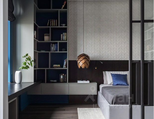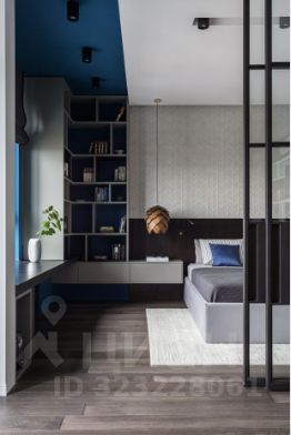 20-ти метровая комната разделена декоративной перегородкой на 2 зоны спальню и гостиную.