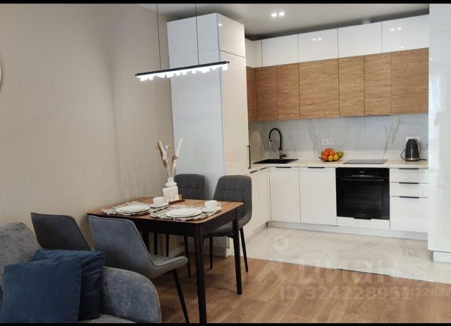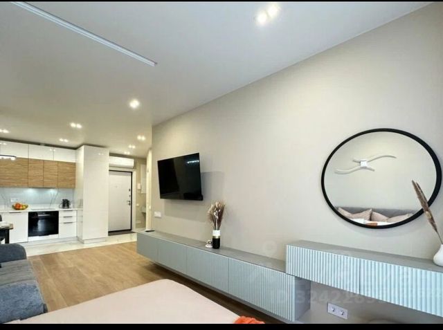 Квартира расположена на 10 этаже 32-этажного монолитного дома, не угловая, очень светлая, с панорамным остеклением и открывающимся видом на благоустроенную территорию комплекса.Ремонт из дорогих материалов, кухонный гарнитур, полы( ламинат), совместный С/У, меется гардеробная комната,шкаф-купе,частично меблированная.