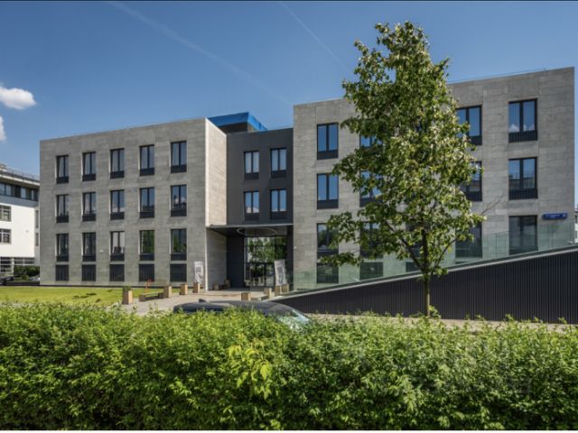 Презентабельная входная группа, видеонаблюдение, консъерж. Два грузовых и два пассажирских лифта, которые спускаются в трехуровневый подземный паркинг. Своя управляющая компания ( только у этого корпуса). Рядом с ЖК располагается благоустроенная лесо-парковая зона.