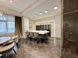 Роскошные апартаменты с четырьмя спальнями площадью 350 м² занимают весь пятый этаж семиэтажного клубного дома "У Патриарших", расположенного всего в 9 минутах ходьбы от станции метро "Пушкинская". Это пространство для тех, кто ценит уединённость, эстетику и безупречное качество жизни в сердце Москвы. Интерьер выполнен в спокойной цветовой палитре с использованием благородных материалов: мрамора, оникса и травертина. Потолки высотой 3,2 метра и окна "в пол" зрительно увеличивают пространство, а мебель и техника от европейских брендов создают уютную атмосферу. Система "умный дом" позволяет дистанционно управлять освещением, климатом и безопасностью. Для вашего комфорта также предусмотрена многоступенчатая очистка воздуха и воды. Функциональная планировка включает парадную прихожую с большой гардеробной и санузлом, полностью укомплектованную кухню, гостиную площадью 74 м², четыре мастер-спальни с ванными комнатами и гардеробными, фитнес-зал с тренажёрами и душевой с хаммамом, кабинет-библиотеку, блок для персонала с отдельной технической кухней и постирочной, а также три балкона. Дополнительно можно приобрести два машино-места в подземном паркинге, где с лёгкостью разместятся три автомобиля. Главное о доме. 7-этажный особняк в стиле ар-деко с фасадом из натурального камня и витражами — это частный клуб на 25 семей. Вас встречает лобби с зоной отдыха и консьерж-сервисом, а на втором этаже работает "Студия ТРИТЭ" Никиты Михалкова, наполняя дом творческой атмосферой. Вы выбираете одну из просторных резиденцией с панорамными окнами, выходящими на тихий внутренний двор. Вечером архитектурная подсветка превращает фасад в изысканный арт-объект. Это жизнь в делюкс-формате: полная приватность, безопасность и безупречный стиль в самом центре светской Москвы. Главное о локации. Вы живёте в 2 километрах от Кремля и в 3 минутах пешком от Патриарших прудов — места, где днём играют с детьми или читают любимые книги на скамейке, а вечером назначают встречи в ресторанах с друзьями и деловыми партнёрами. Ваши выходные могут начаться с прогулки в саду "Аквариум" или поездки на Тверскую за покупками. Вы тренируетесь в World Class, а дети учатся в рейтинговой школе 2123. Отсюда за 8 минут вы доходите до Новопушкинского сквера, а через 10 оказываетесь на Садовом кольце. Комментарий эксперта. Меня зовут Инна Щекина — брокер компании Whitewill. Я отвечаю за продажу этого лота. Свяжитесь со мной, чтобы получить расширенную презентацию, больше фотографий или договориться о просмотре. Могу провести экскурсию по локации и познакомить вас с этим домом. ID 312 922. Продам квартиру вторичка в переулке Малый Козихинский в Москве.