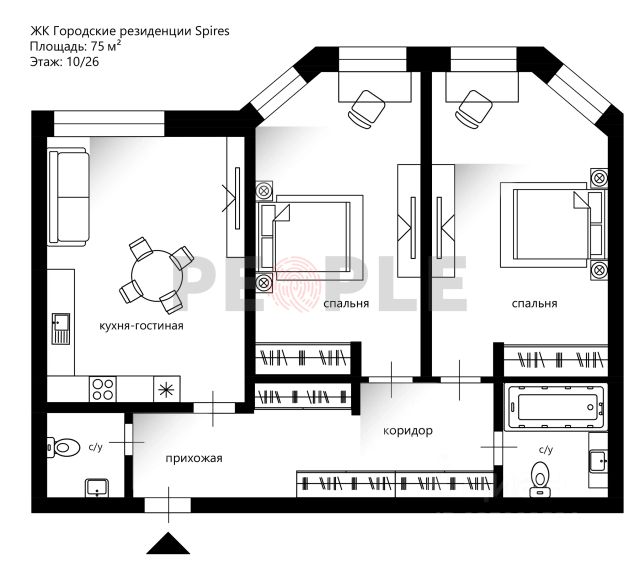 - Тишина сверху: всего две квартиры на площадке, выше только тех. помещения.