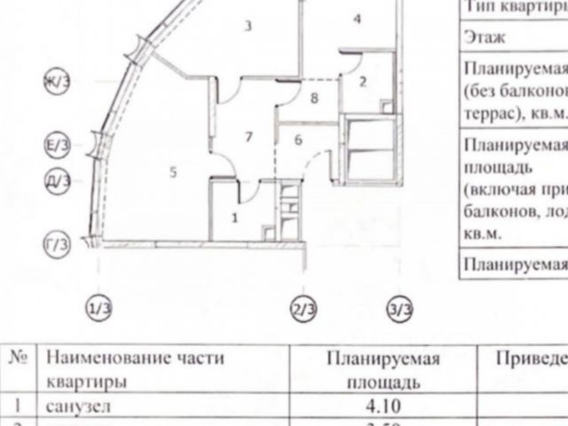 Общая площадь квартиры - 127,8 кв.м.