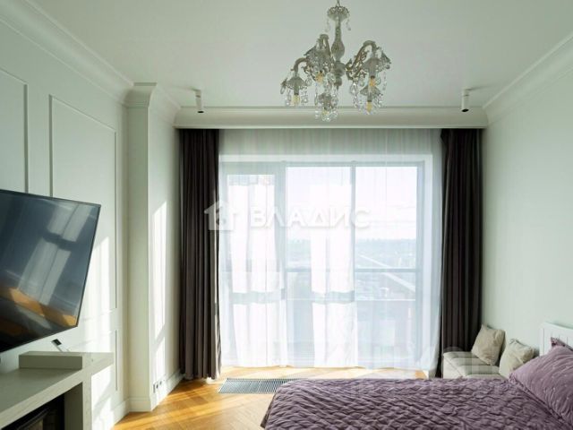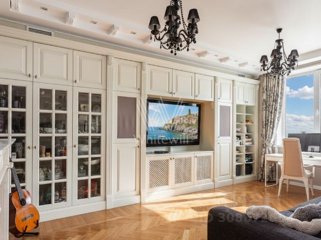 Видовая квартира с тремя спальнями общей площадью 187 м² в комплексе бизнес-класса "Гранд-парк" на 18-м этаже.